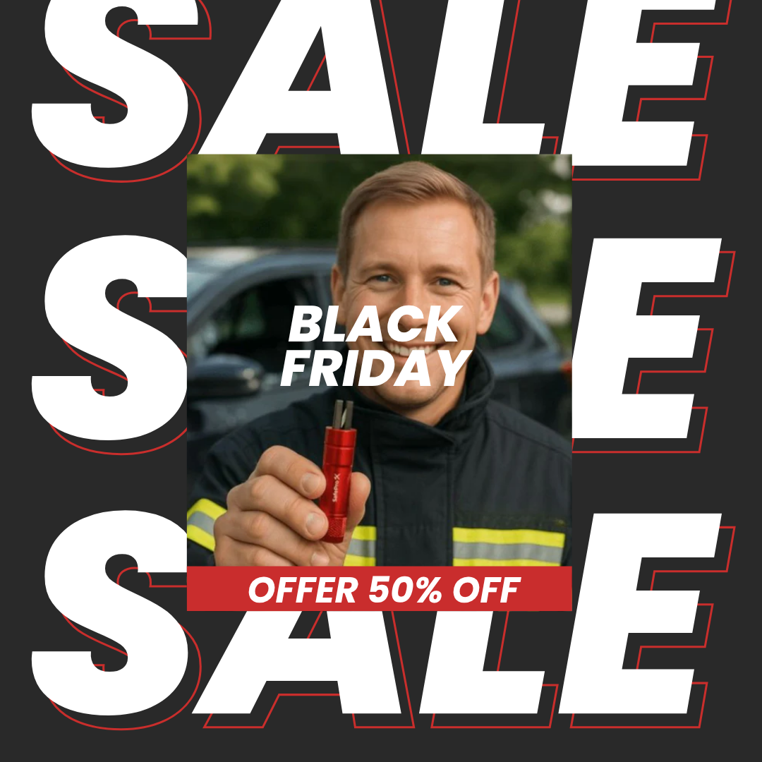 S ostrým nožom na rezanie pásov a presným rozbíjačom skla sa dokážete oslobodiť za pár sekúnd — bez paniky alebo váhania.
