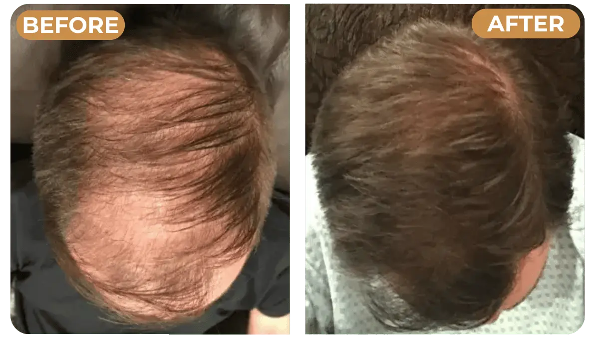 Celková hustota sa zdá byť viditeľnejšia u mnohých používateľov. Oblasti s riedkymi vlasmi sa javia menej výrazne. Udržujte fotografie z Dňa 0 / Týždeň 4 / Týždeň 8 / Týždeň 12 na porovnanie.